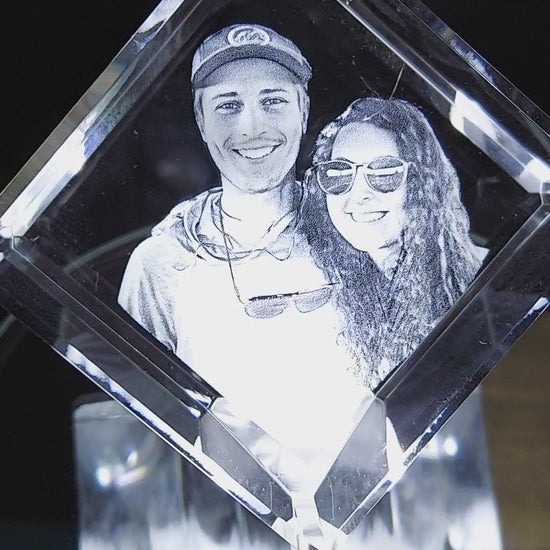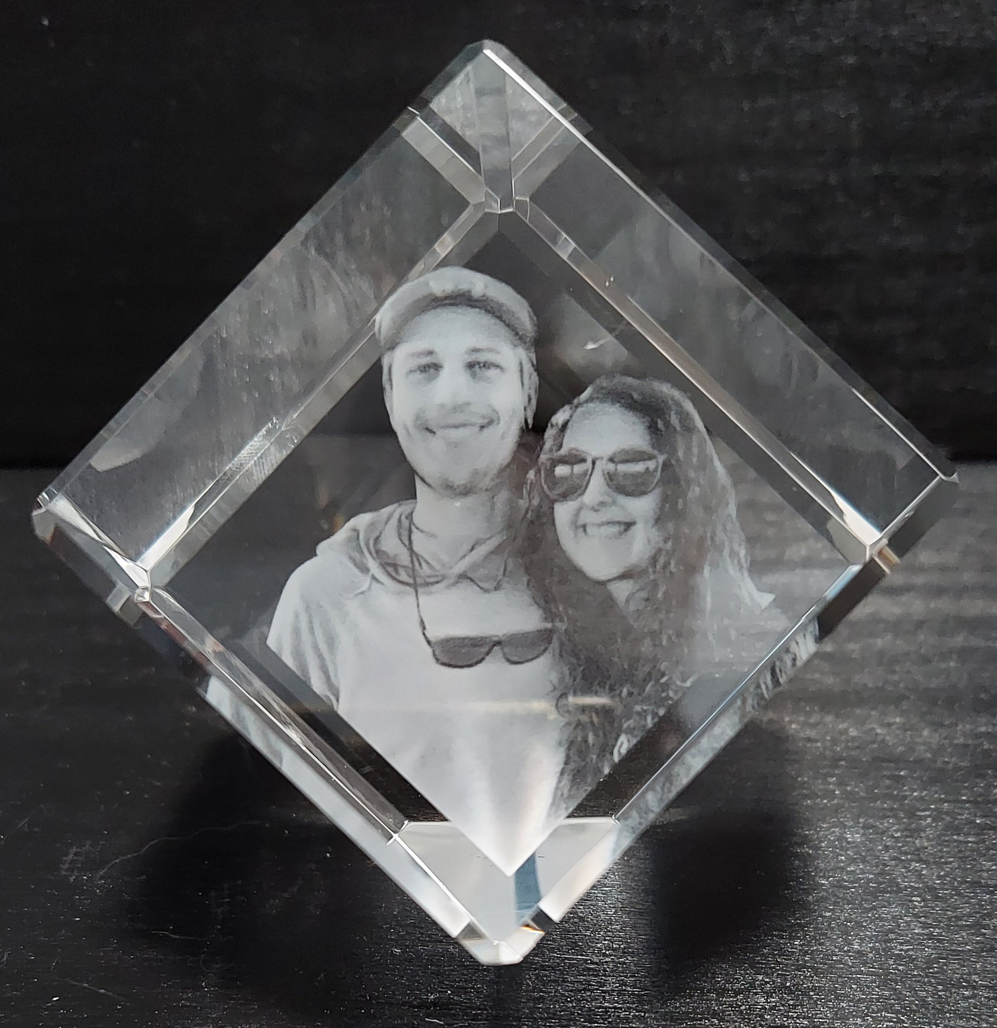 Our custom 3D laser engraved cut corner crystal personalized gift made in the USA is absolutely a work of art. We take great care and meticulously model your photo into 3D to make it pop into a life like no one has ever seen. Our custom made 3d crystal photo is the perfect gift for wife, husband, mother, father, daughter, son, grandma, grandfather, friend, and everyone else - great for birthday gifts, wedding gifts, anniversary gifts, or memorials. These 3D laser engraved crystals are also perfect for your beloved pets. Keep your memories forever and showcase them in this unique piece of crystal that will never wear, tear, or fade away.