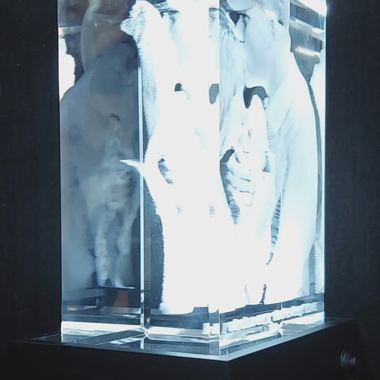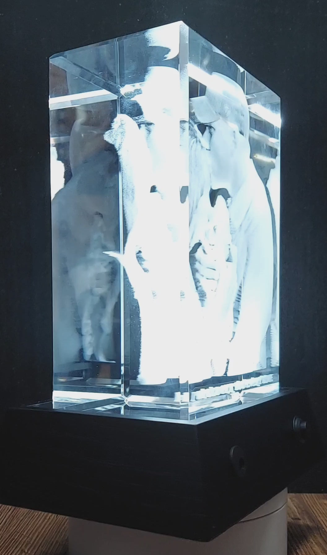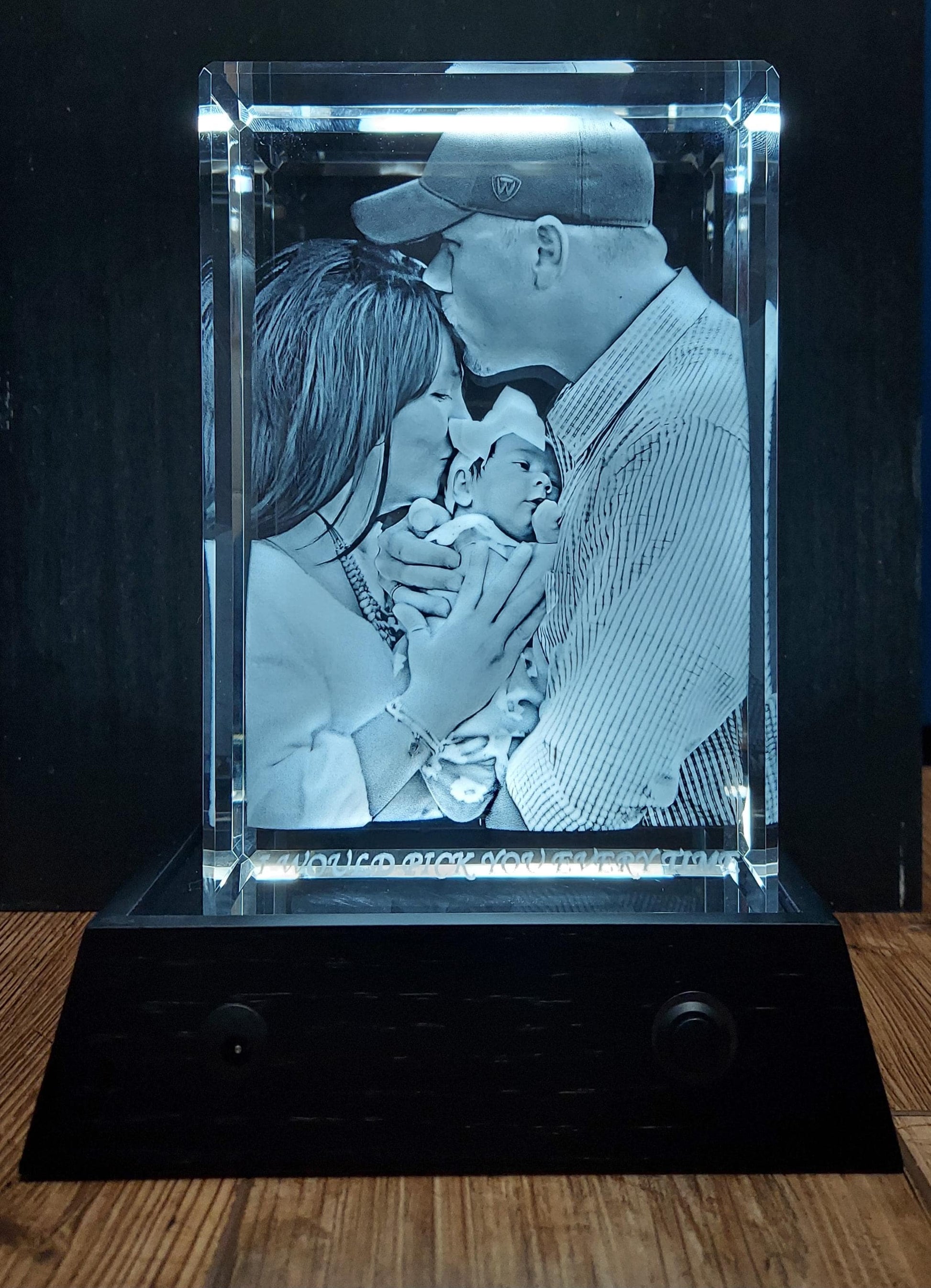Custom 3D laser engraved rectangle crystal (vertical portrait style) personalized gift made in the USA. Our custom made 3d crystal photo is the perfect gift for wife, husband, mother, father, daughter, son, grandma, grandfather, friend, and everyone else. These 3D laser engraved crystals are also perfect for your beloved pets. Keep your memories forever and showcase them in this unique piece of crystal.