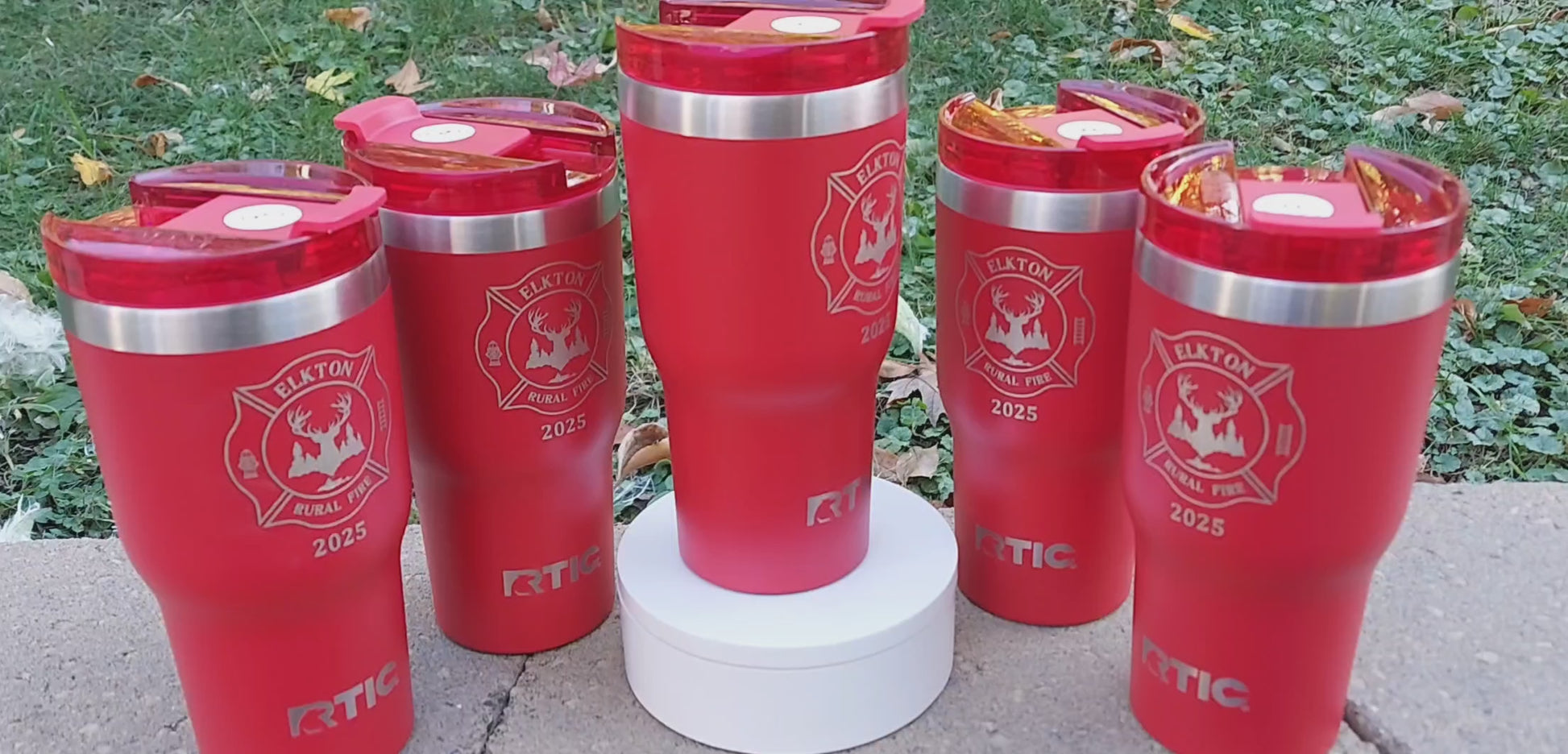 Custom laser engraved RTIC tumblers - choose between 20 oz or 30 oz.