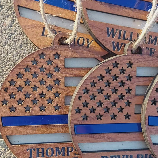 Blue Line First Responders Double Layered Ornament | Custom Wooden Ornament | Police - American Flag Christmas Tree Decor