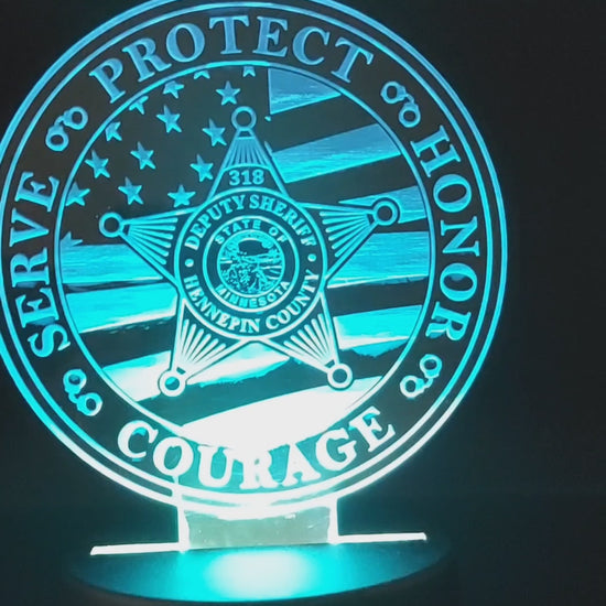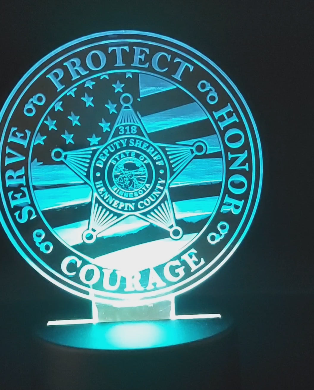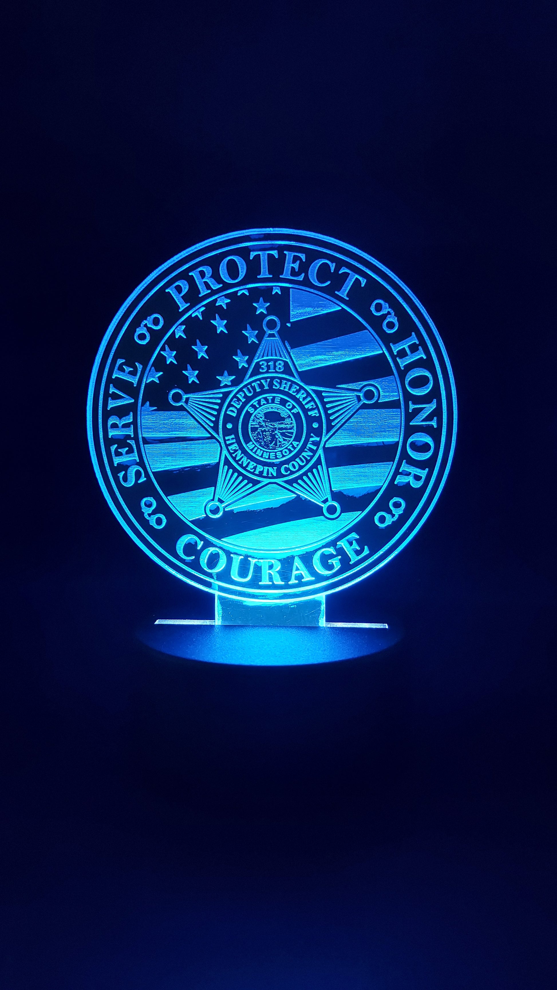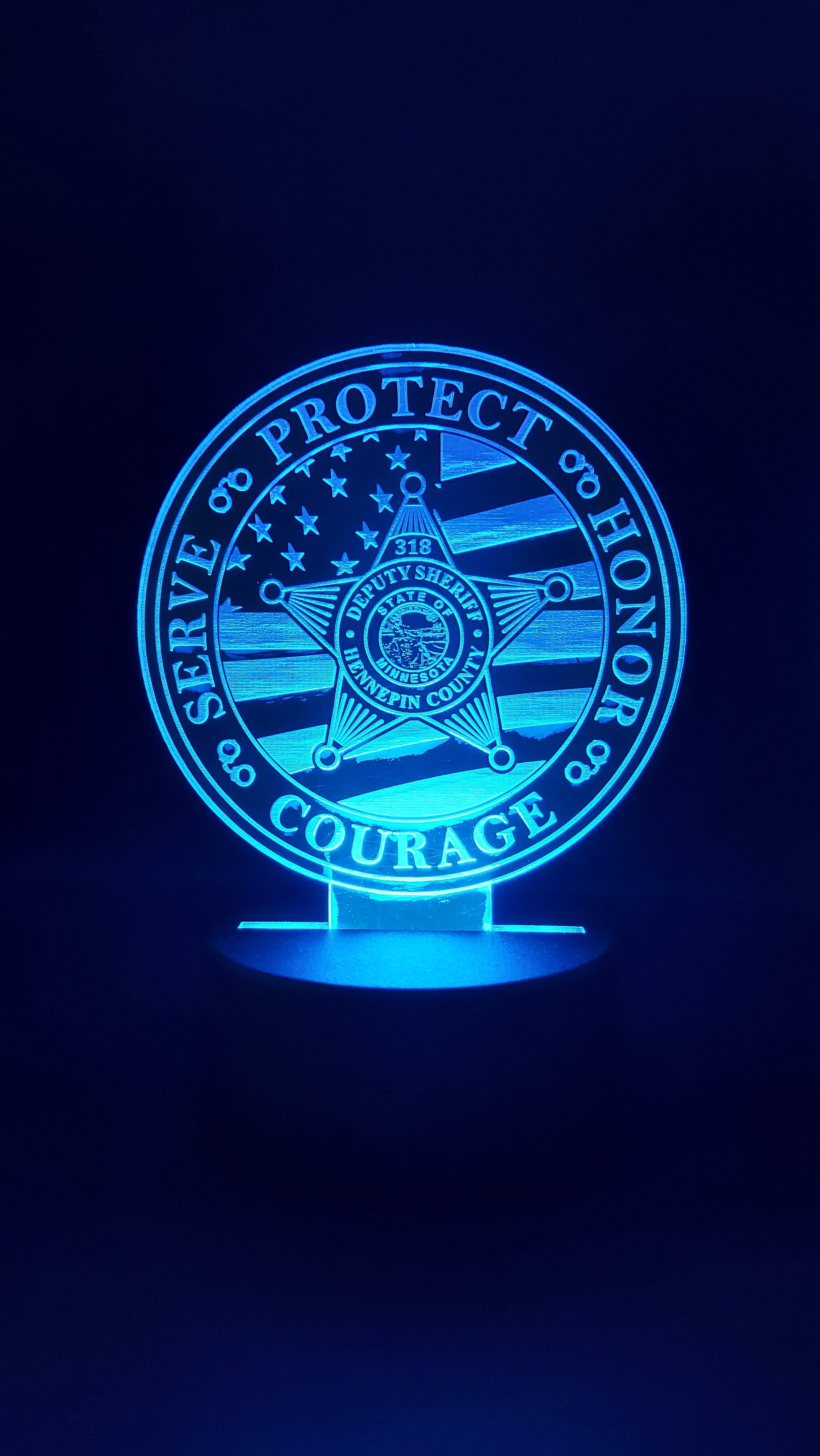 Police Badge Acrylic lighted plaque, US Flag, Police Gift lighted plaque / Night Light, Law Enforcement, Sheriff, Trooper, Remote Control